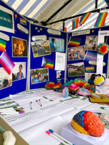 Colleagues provided information to a diverse range of attendees about current research studies, as well as handing out hundreds of Pride flags, pens and pronoun badges.
